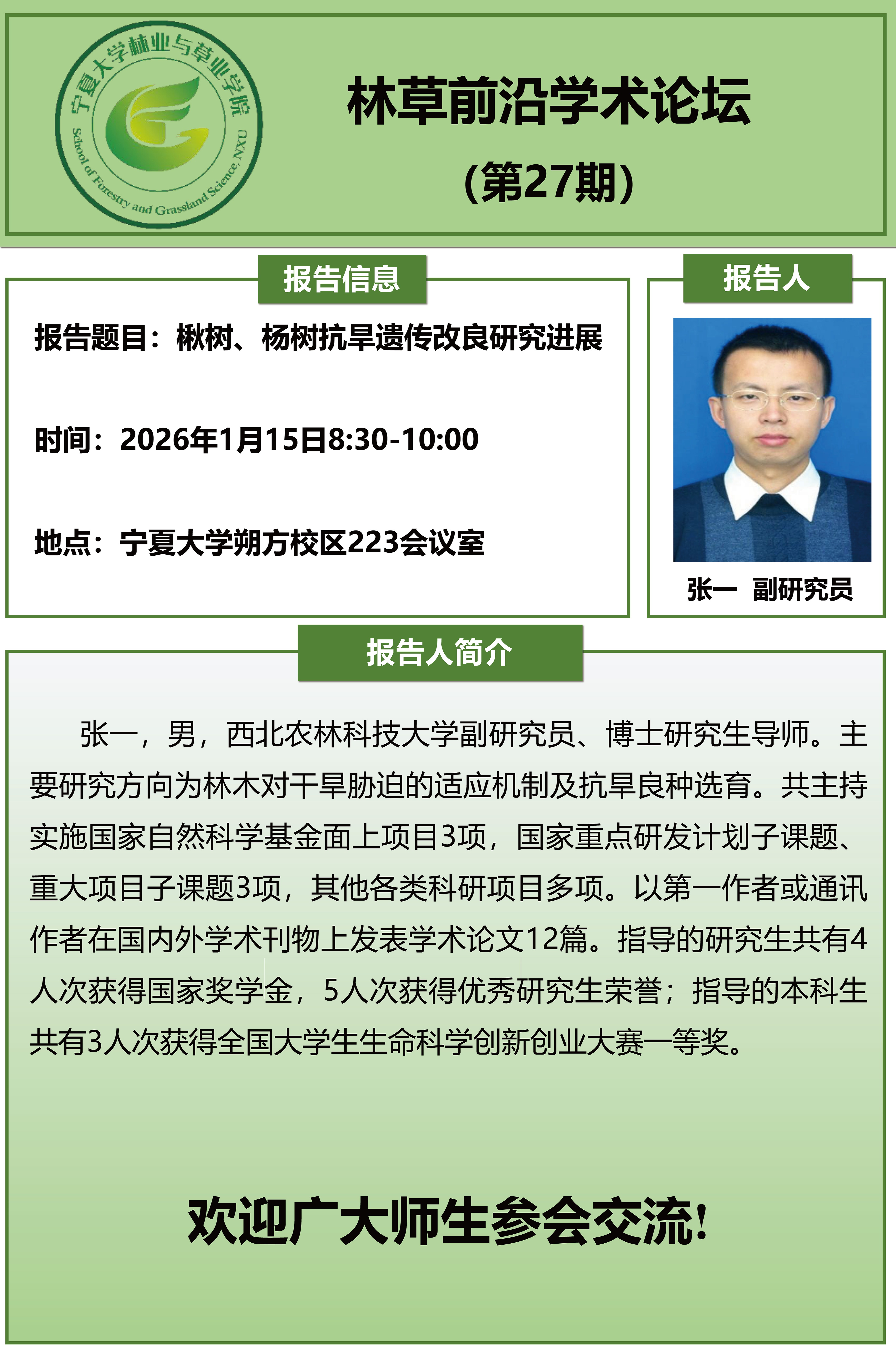 林草前沿学术论坛(第27期)——楸树、杨树抗旱遗传改良研究进展