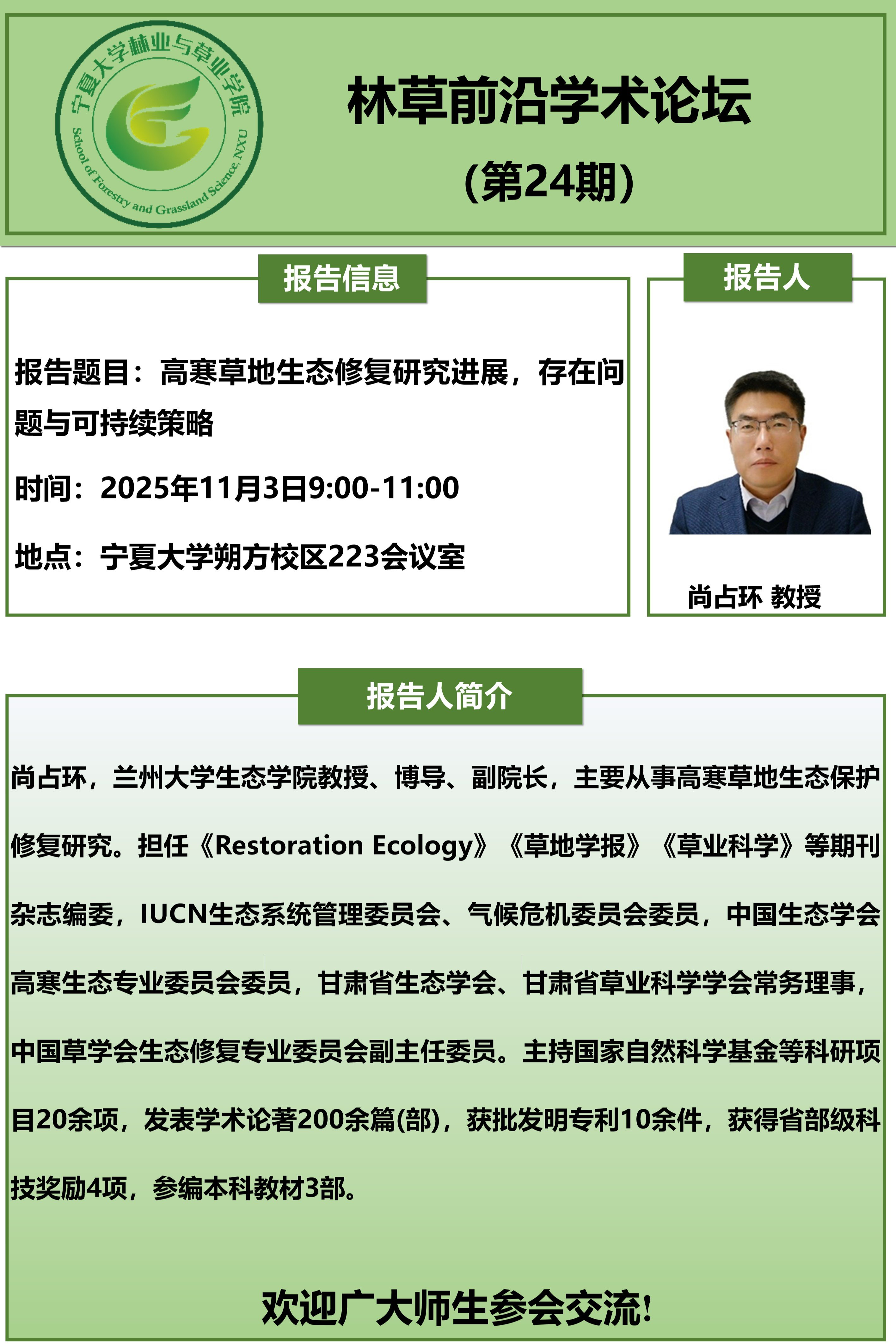 林草前沿学术论坛(第24期)——高寒草地生态修复研究进展,存在问题与可持续策略
