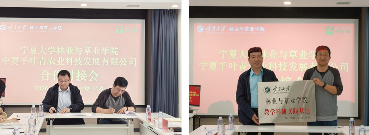 为深入贯彻落实国家关于深化产教融合、促进高校毕业生高质量就业的决策部署,精准对接宁夏区域林草产业发展需求,进一步拓宽毕业生就业渠道、搭建校企合作桥梁,2026年3月31日,林业与草业学院党总支书记贺海明、副院长伏兵哲,润泽书院副院长陈楠,学院教师代表张金青、许玲玲、梁丹妮及毕业生代表一行,赴宁夏千叶青农业科技发展有限公司开展访企拓岗专项活动。