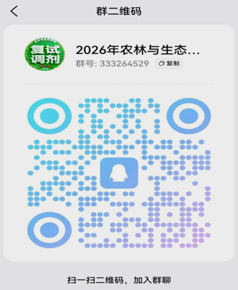请接到调剂复试通知,确认参加复试的考生尽快加入“2026年农林与生态学部调剂复试QQ群”(群号:333264529,群二维码见下图),以便接收相关通知。进群后,请更改昵称为“姓名+报考学院+报考专业(方向)+联系电话”。
