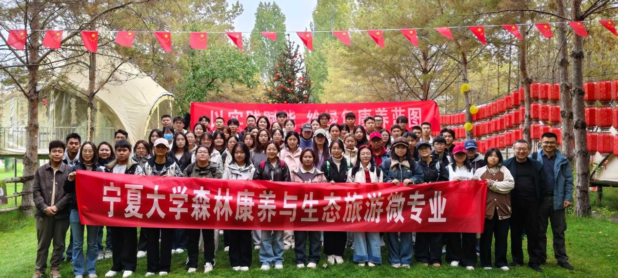 2025年10月12日,宁夏大学林业与草业学院森林康养与生态旅游微专业的师生们前往宁夏白芨滩青绿莳光森林康养营地,开展了一场主题为“绿色疗愈身心重启”的专业实习活动。此次实践旨在将课堂理论与自然实践深度融合,让学生在沉浸式森林体验中感受森林康养的独特魅力,提升专业素养与实践能力。